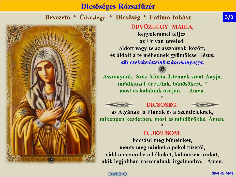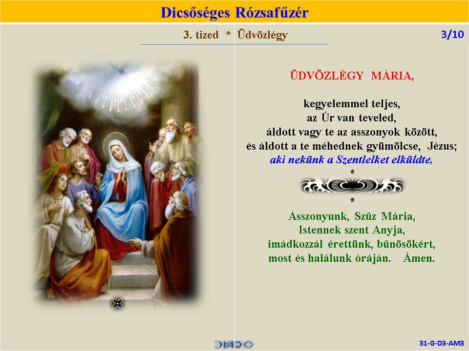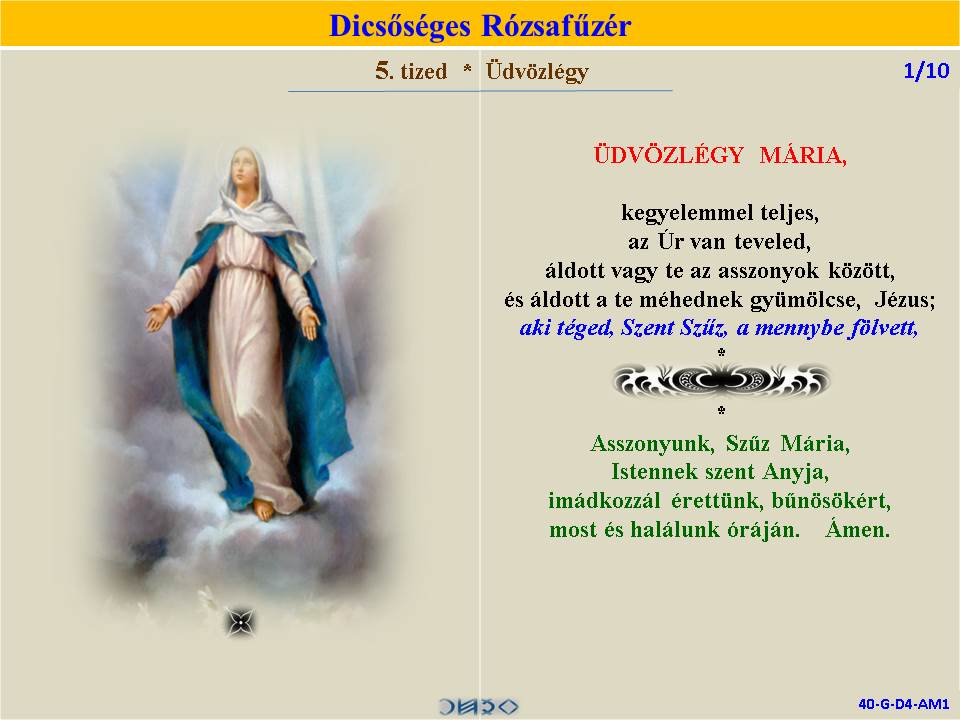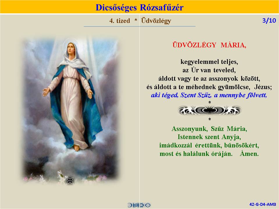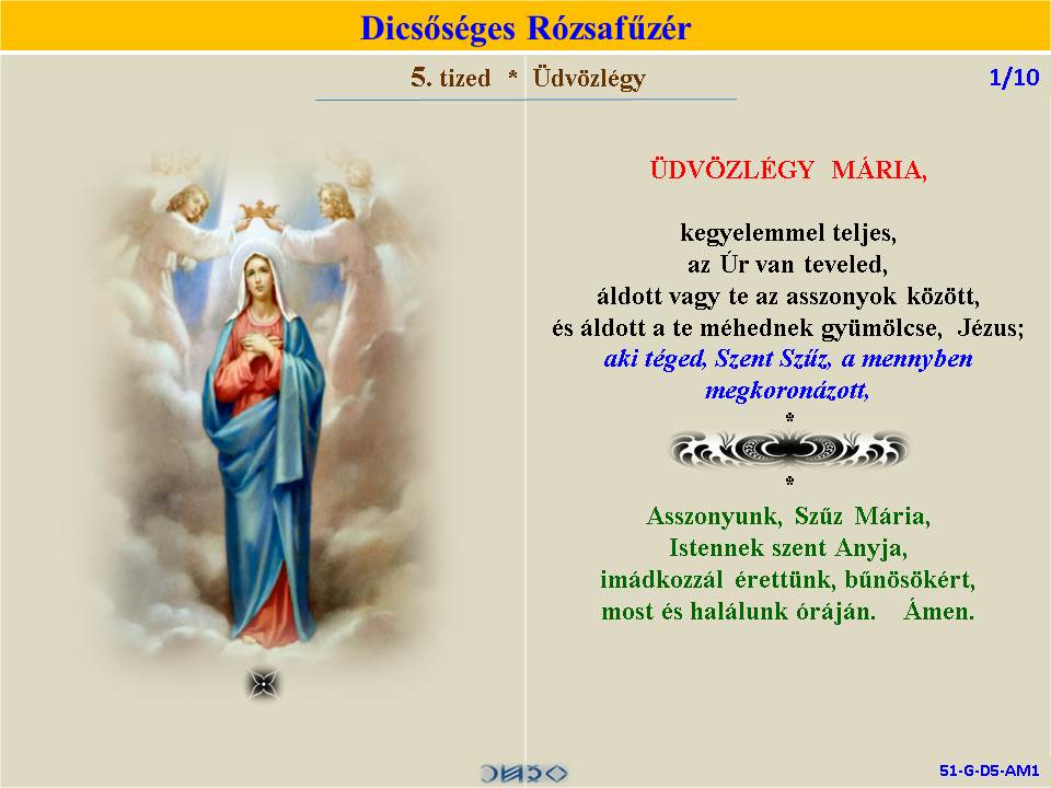 | DICSŐSÉGES | ÖRVENDETES | ◄ RÓZSAFŰZÉR SZENTIRÁSI IDÉZETEKKEL ► | FÁJDALMAS | VILÁGOSSÁG | |||||