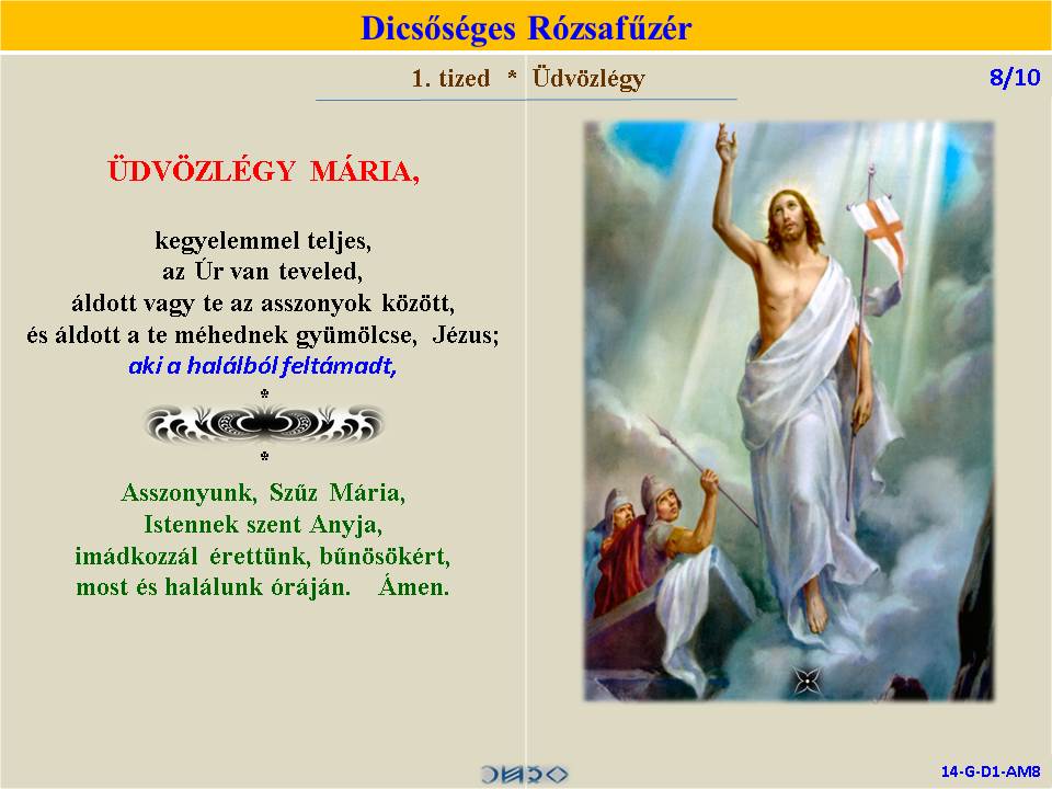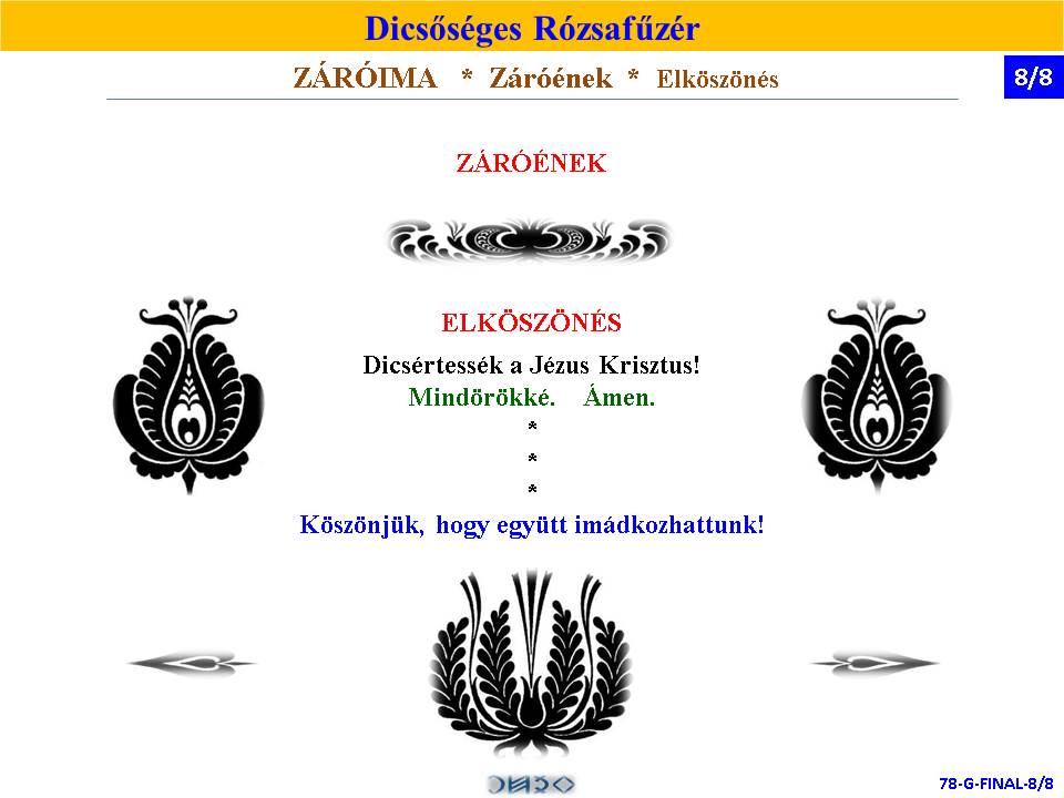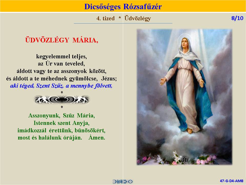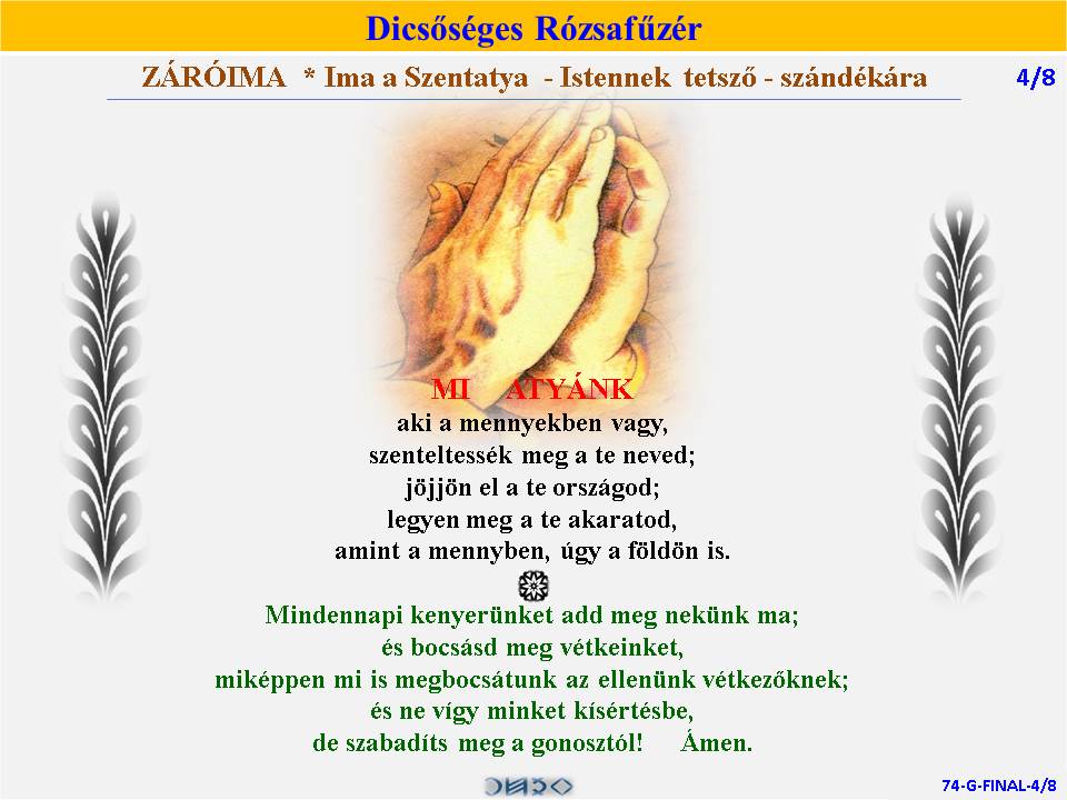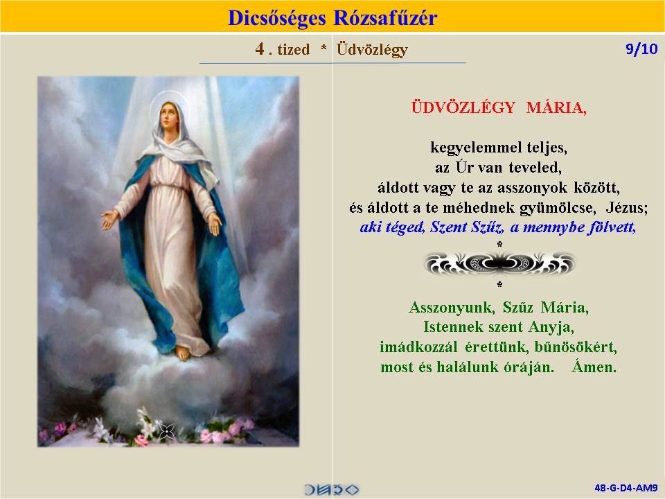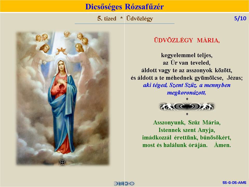 | DICSŐSÉGES | ÖRVENDETES | ◄ RÓZSAFŰZÉR SZENTIRÁSI IDÉZETEKKEL ► | FÁJDALMAS | VILÁGOSSÁG | |||||