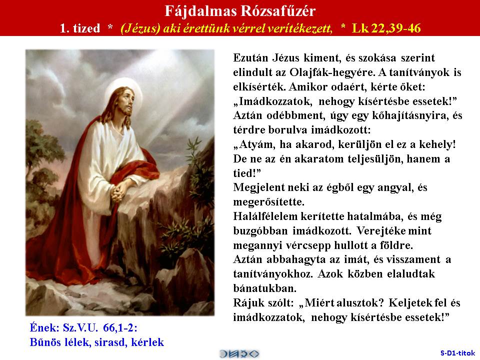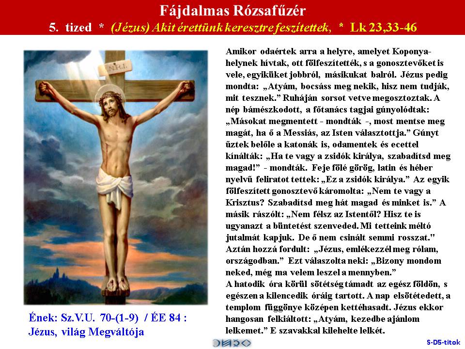 | 1. * Lk 22,39-46. | 2. * Jn 19,1-5. | 3. * Mt 27,27-31. | 4. * Lk 23,26-31. | 5. * Lk 23,33-46. |